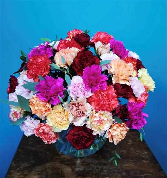 Bouquet of the Week - 50 mixed coloured carnations