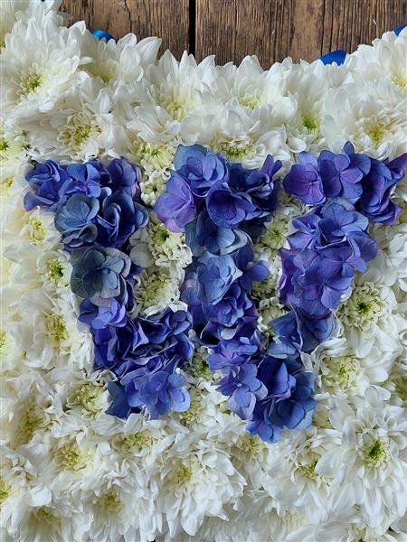 Initals spelt out in danty flower heads on a 12 inche cushion. Please Specify the Inital and colour you would like
